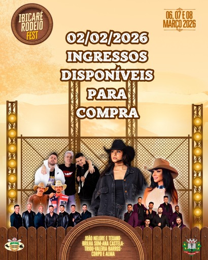 A partir da segunda-feira, 02 de fevereiro de 2026, estarão à venda os ingressos para o Ibicaré Rodeio Fest 2026, um dos maiores eventos do Meio-Oeste catarinense, com três noites de shows nacionais e regionais. O público poderá escolher entre Pista, VIP e opções de passaporte, com valores que variam conforme o lote.