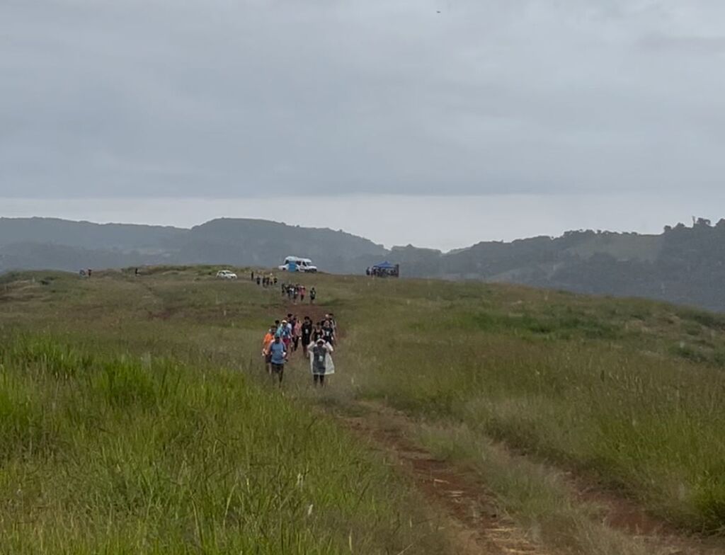 A chuva mansinha durante o percurso trouxe um charme único, tornando a caminhada ainda mais acolhedora e cheia de significado.