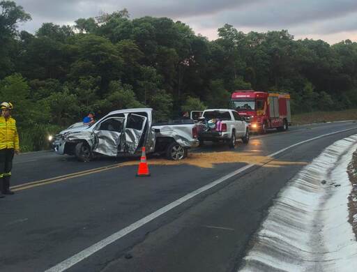 A batida foi entre uma carreta Scania, dirigida por um homem que não sofreu ferimentos, e uma caminhonete Volkswagen Amarok, com placas da Argentina.