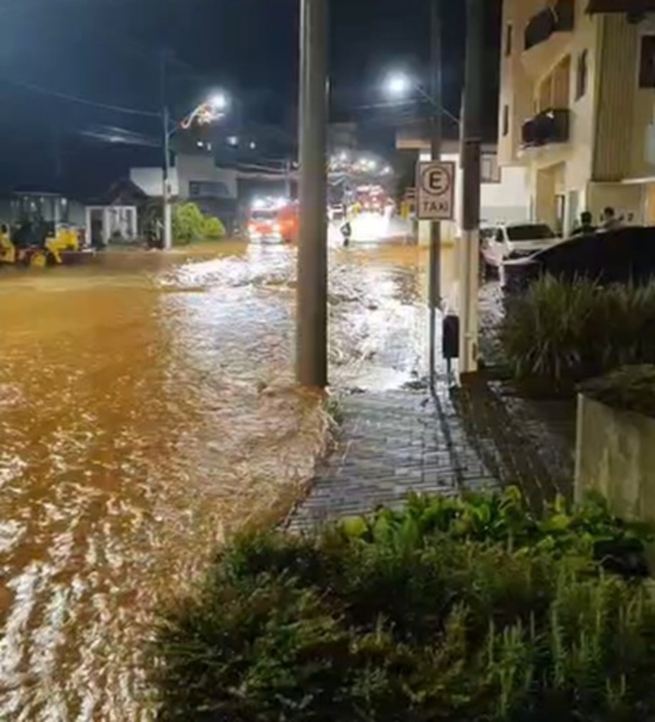 Uma forte chuva registrada na tarde de segunda-feira (29) causou uma série de transtornos em Treze Tílias, no Meio-Oeste catarinense. Em poucos minutos, o grande volume de água resultou em alagamentos em diversos pontos da cidade, com ruas completamente tomadas e água invadindo residências e estabelecimentos comerciais, gerando prejuízos à população. As informações são da Rádio Tropical FM.