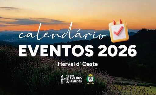 A Prefeitura Municipal de Herval d’Oeste convida a todos para participarem do Evento de Lançamento do Calendário de Eventos de 2026, que acontecerá no dia 16 de dezembro de 2025, às 19h, no Auditório da Saúde.