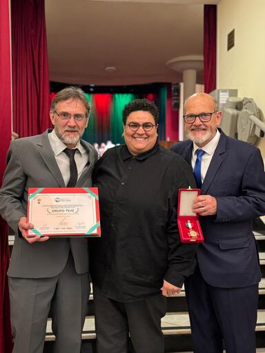 O Grupo Tejo foi homenageado na segunda-feira (24), em Florianópolis, com a Medalha Cruz e Sousa, uma das mais altas distinções concedidas pelo Governo de Santa Catarina a instituições e personalidades que contribuem de forma decisiva para o desenvolvimento cultural do estado. A condecoração, que reconhece trajetórias de grande relevância artística e histórica, destaca o papel do Tejo como um dos pilares da arte catarinense, especialmente no teatro e no carnaval.