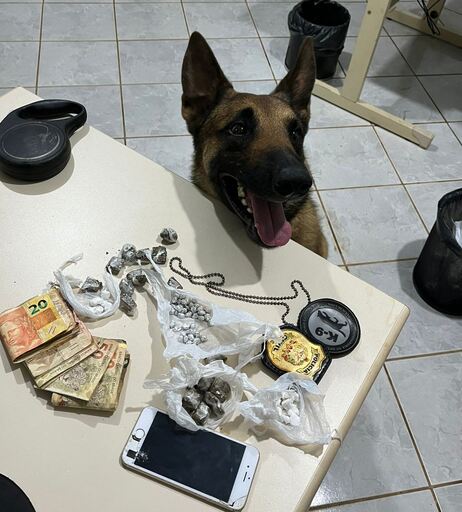 Além do dinheiro, 19 buchas de maconha (113 g), 12 buchas de cocaína (5,7 g), 40 pedras de crack (5,3 g), duas chaves residenciais e três celulares foram apreendidos. Grande parte das drogas estava escondida dentro de um tronco de árvore e foi atribuída ao jovem maior de idade. A Polícia Civil segue com as investigações.