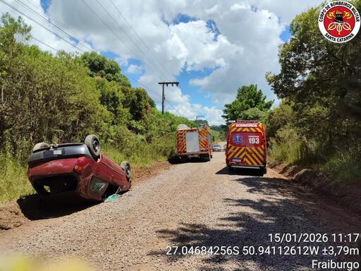 Uma mulher ficou ferida após sair da pista com o veículo que conduzia e capotar, na manhã de quinta-feira, dia 15, no bairro São Miguel, em Fraiburgo, no Meio-Oeste catarinense.