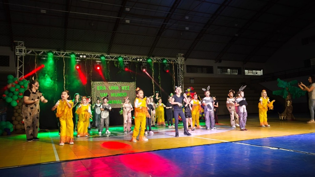Na quinta-feira (06), o Ginásio Municipal de Esportes de Ibicaré foi palco de uma noite repleta de arte, imaginação e encanto. A Escola de Educação Básica Municipal Madre Leontina realizou a tradicional Noite Cultural da Educação Infantil, que neste ano teve como tema “Era uma vez um mundo animal”.