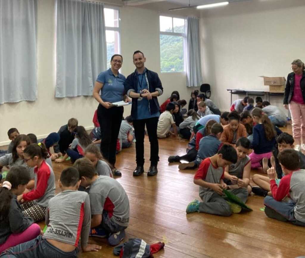Os alunos do 3º, 4º e 5º ano da Escola Municipal de Educação Básica Madre Leontina participaram de importante palestra educativa promovida pela Vigilância Sanitária e pelo Setor de Endemias de Ibicaré, por meio do Programa Saúde na Escola (PSE). A atividade teve como foco despertar nos estudantes a responsabilidade com o meio ambiente, o cuidado com a saúde e a prevenção de doenças.