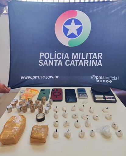 A partir das diligências, os policiais localizaram em Xaxim cerca de 500 gramas de substância análoga à cocaína, além de duas balanças de precisão, celulares e dinheiro.