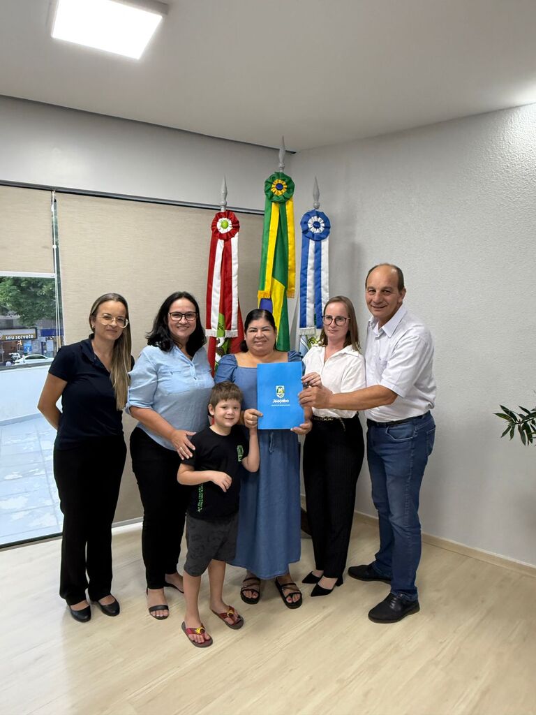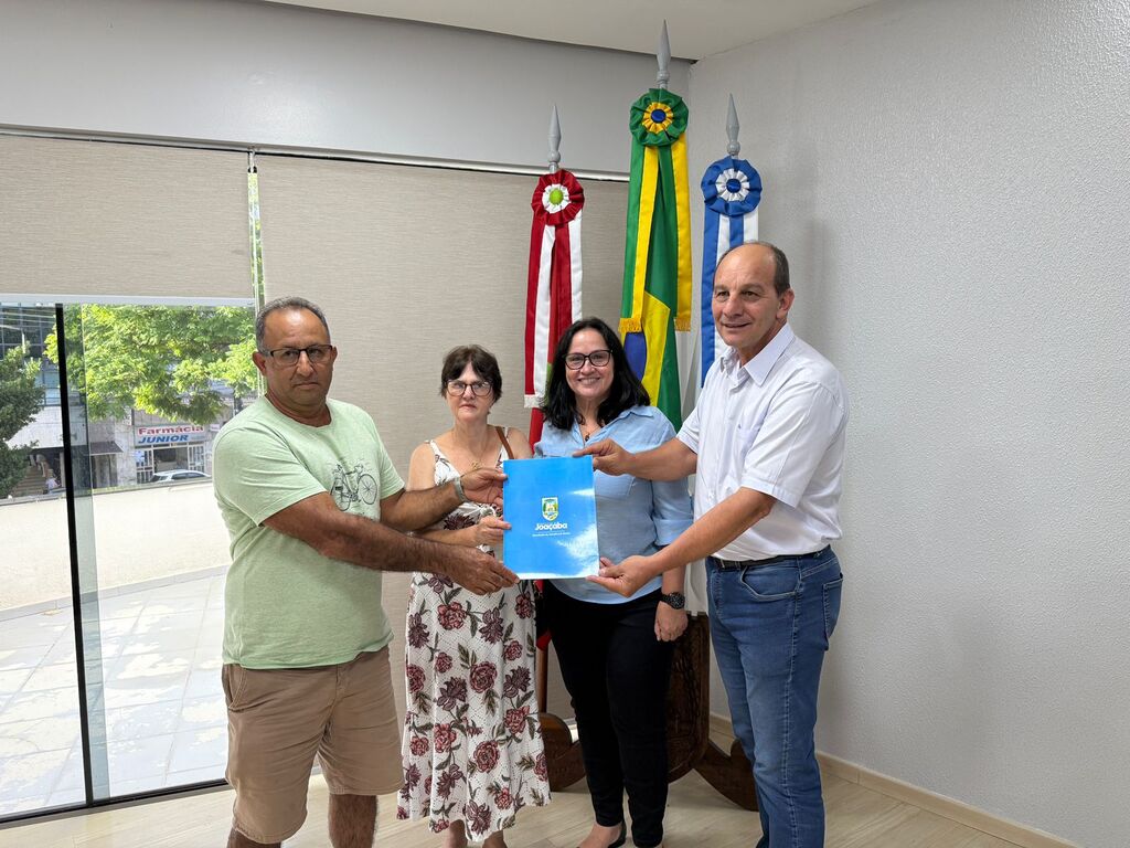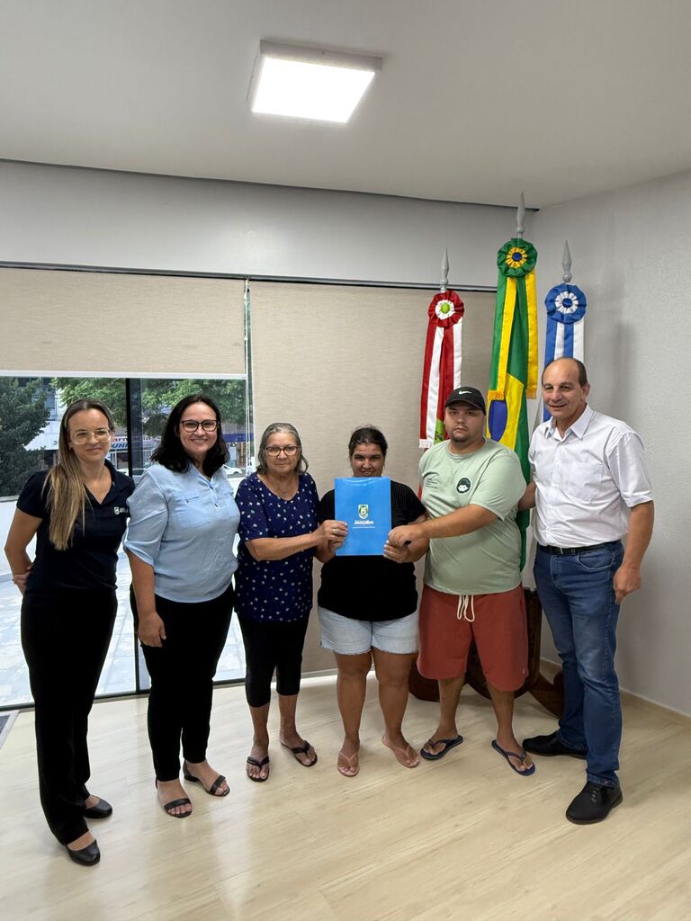 Na sexta-feira (20), a Prefeitura de Joaçaba realizou a entrega de nove matrículas aos moradores da Rua Curitiba, no bairro Flor da Serra, marcando a conclusão do processo de regularização fundiária da localidade. As famílias que residem na via não possuíam escritura ou matrícula registrada de seus imóveis e, agora, passam a ter a propriedade oficialmente reconhecida.