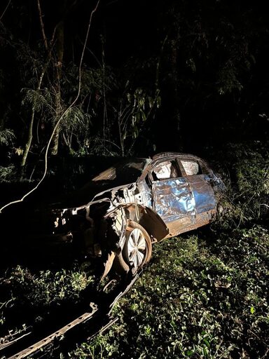 Inicialmente acionadas para atender um possível acidente de trânsito, as guarnições encontraram um veículo VW/T-Cross, de cor azul, envolvido em saída de pista, em uma área de mata. Apesar da situação, o automóvel estava sem ocupantes e não havia bloqueio do fluxo de veículos na rodovia.