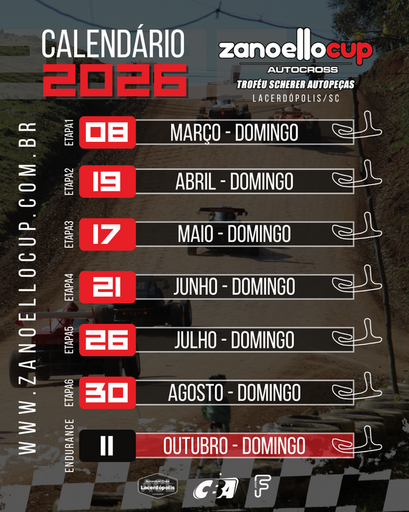 Calendário ZanoelloCup Autocross 2026