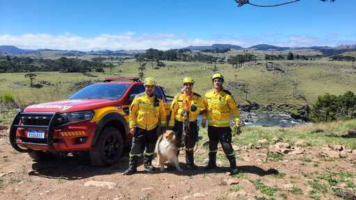 Um cachorro foi resgatado por bombeiros após cair em uma cachoeira próxima da SC-390, em Bom Jardim da Serra, na região serrana de Santa Catarina.
