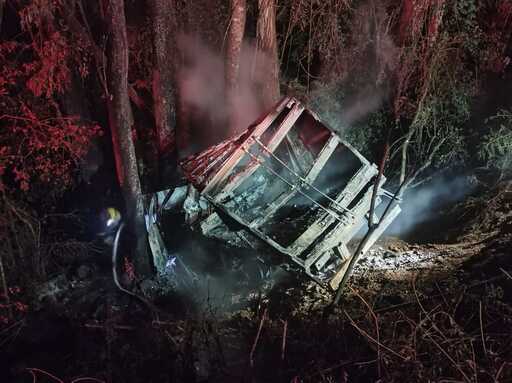 Segundo o Corpo de Bombeiros, o acidente ocorreu por volta das 22h30, envolvendo uma caminhonete F-350. No local foi constatado que o veículo perdeu o controle, saiu da estrada e desceu a ribanceira, iniciando um incêndio logo em seguida.