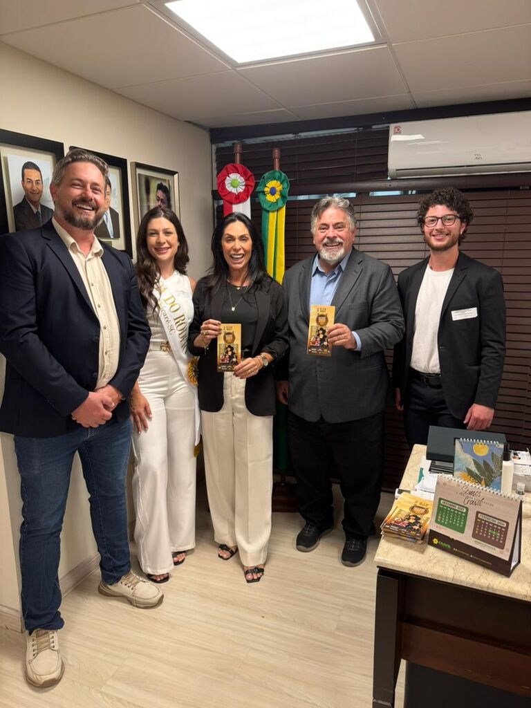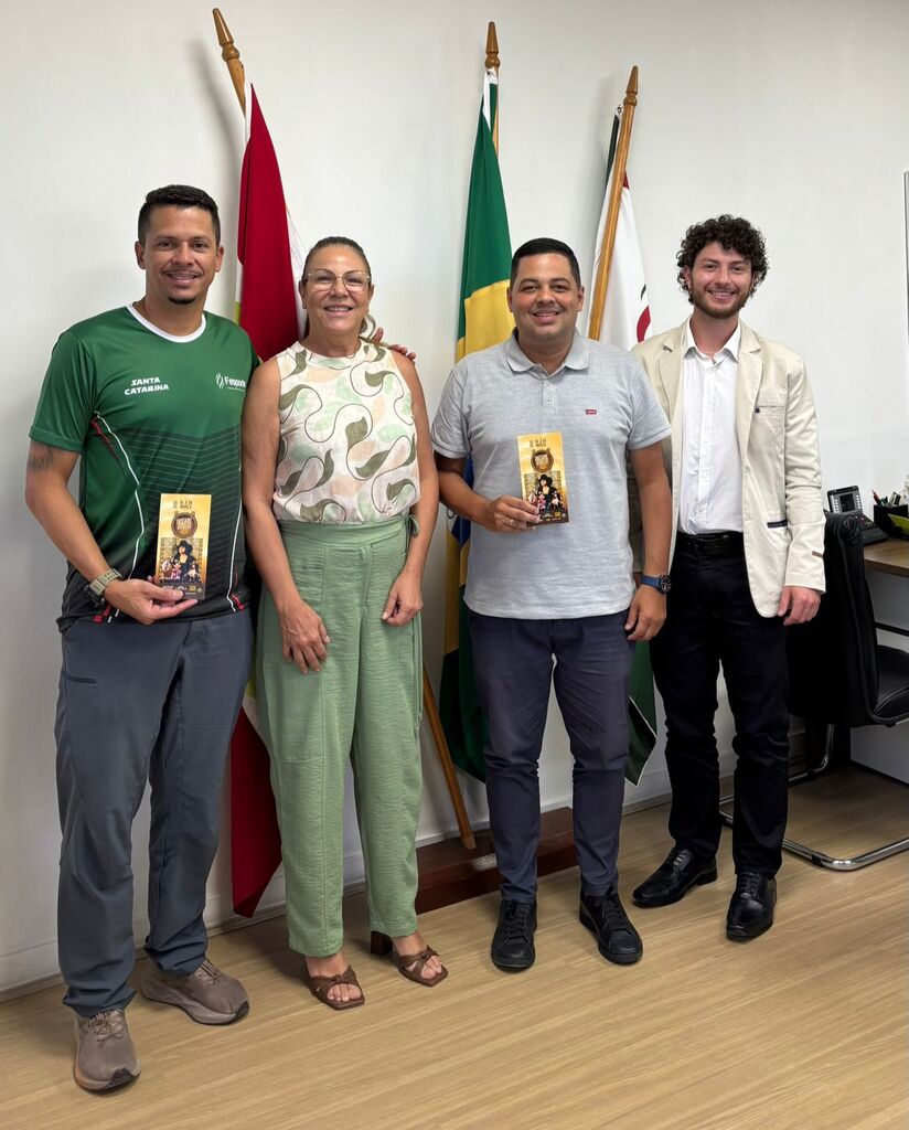 A agenda incluiu ainda encontro com a presidente da Fundação Catarinense de Cultura, Maria Teresinha Debatin, fortalecendo o diálogo institucional e buscando apoio para iniciativas culturais ligadas ao Rodeio Fest.