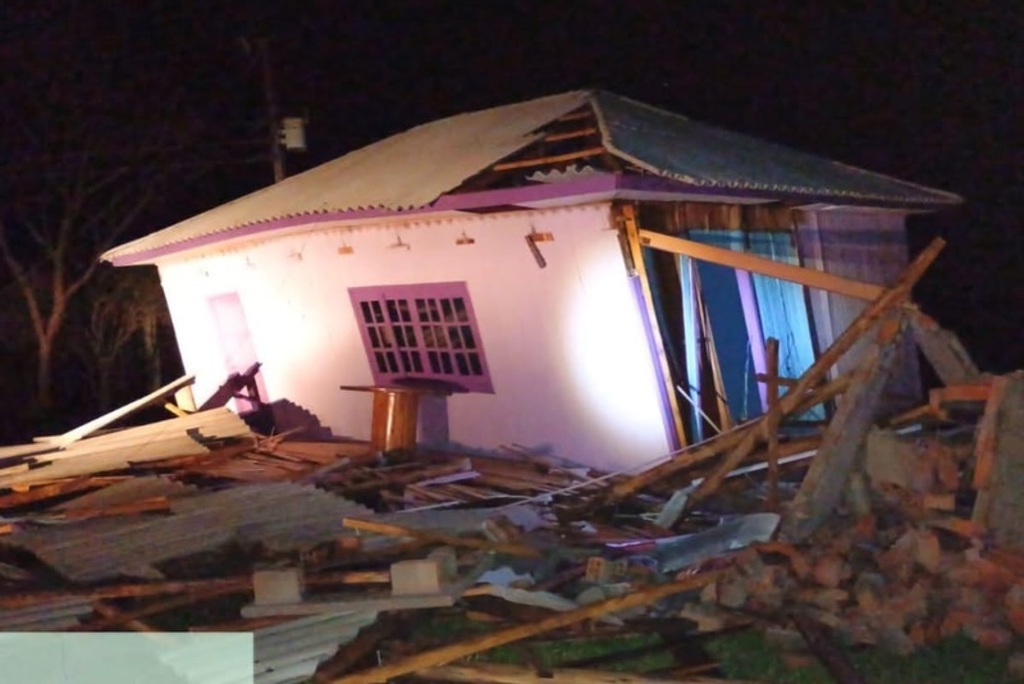 Imagens de drone, fornecidas pela Coordenadoria Regional de São Miguel do Oeste, mostram um caminho de destruição com telhados parcialmente arrancados e árvores tombadas, características típicas de tempestades severas associadas a tornados. Em Barra Bonita, uma residência de madeira foi arrancada pela força do vento e arremessada sobre um automóvel. Parte da estrutura de outra casa também cedeu, atingindo veículos estacionados.