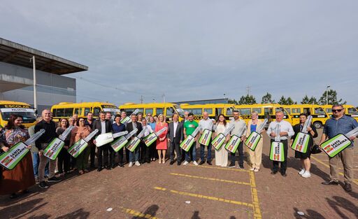 O governador Jorginho Mello e a secretária de Estado da Educação, Luciane Ceretta, entregaram 20 ônibus escolares para as redes públicas de ensino de Santa Catarina, na quinta-feira, 13. O evento, realizado em Florianópolis, representa a primeira etapa da iniciativa que distribuirá, ao todo, 100 novos veículos até o início do ano letivo de 2026.