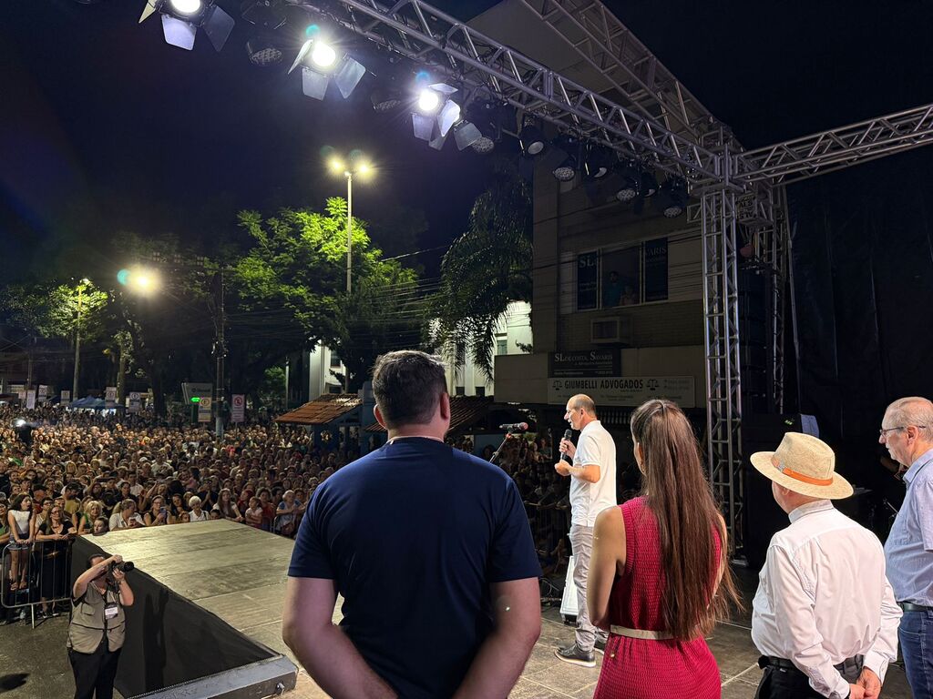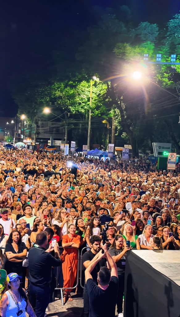 A noite desta sexta-feira (20) foi marcada por fé, emoção e grande participação popular em Joaçaba. O show nacional do Padre Fábio de Melo, realizado na Avenida XV de Novembro, reuniu mais de 6 mil pessoas entre moradores e visitantes, em um momento especial que marcou a abertura oficial da programação de Páscoa no município.
