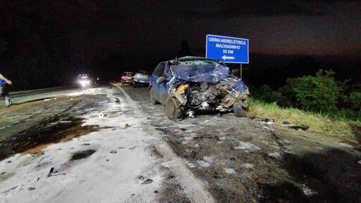 Um grave acidente de trânsito deixou três pessoas feridas na BR-153, a cerca de 55 quilômetros da Usina Hidrelétrica de Machadinho, na noite de sexta-feira (3). A colisão envolveu uma caminhonete Nissan Frontier e um Volkswagen Gol.