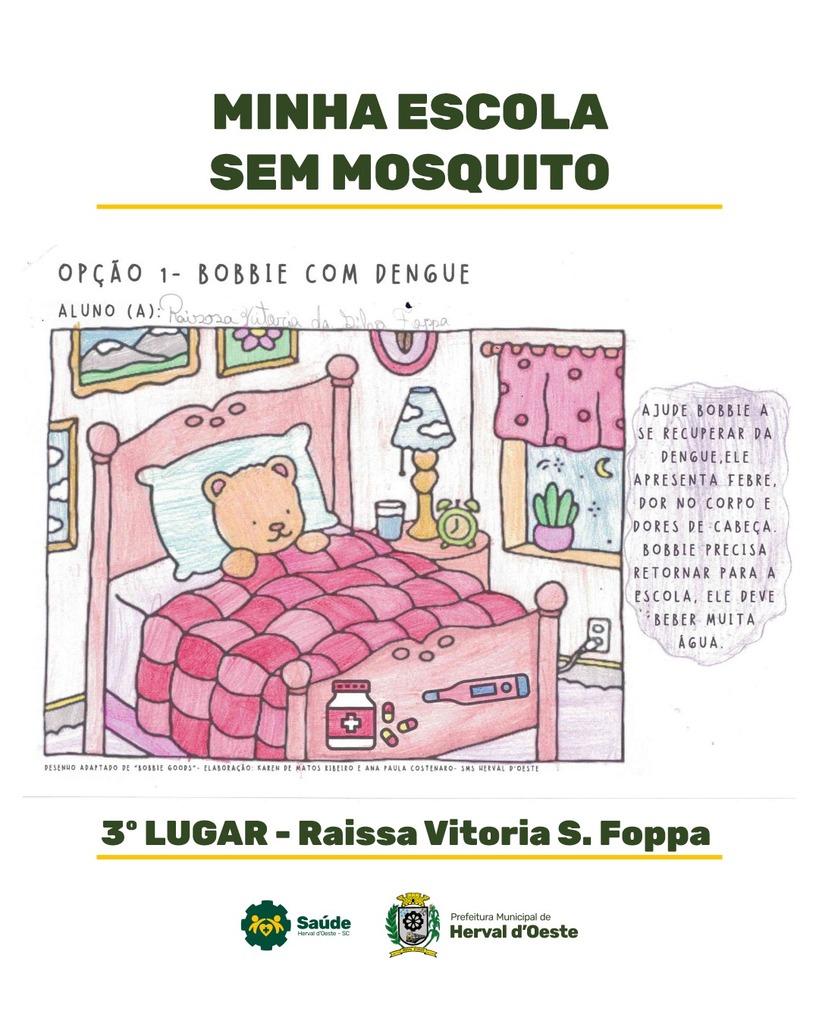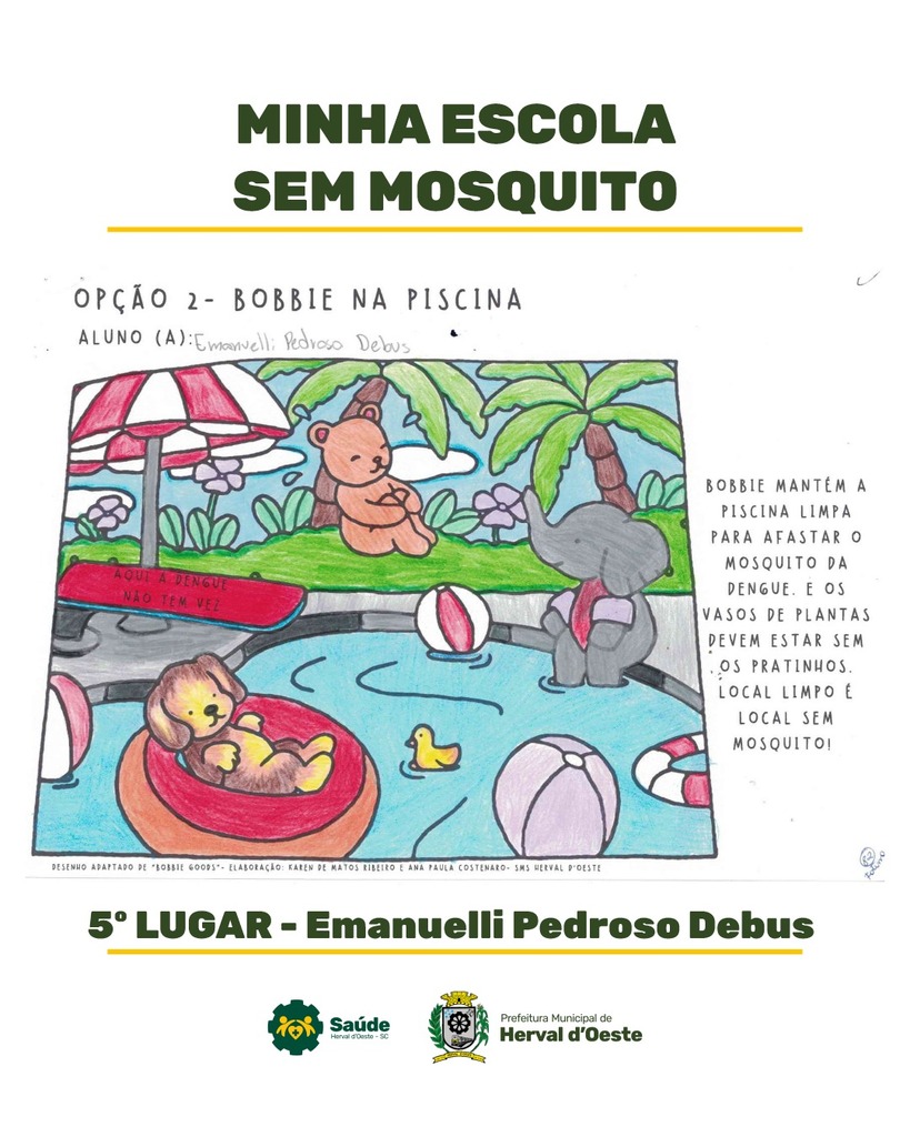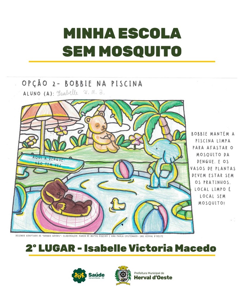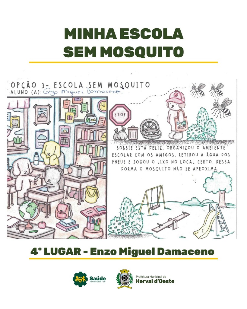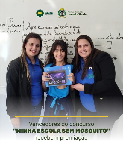 Na sexta-feira, dia 26, foi realizada a entrega dos prêmios do concurso “Minha Escola Sem Mosquito”, iniciativa das vigilâncias ambiental e epidemiológica do município de Herval d' Oeste. O concurso mobilizou estudantes do 4º ano das escolas municipais na conscientização sobre a importância do combate ao Aedes Aegypti.