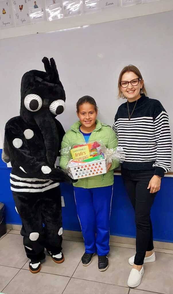 A ação premiou os alunos que se destacaram na produção de trabalhos criativos (textos e desenhos) voltados à prevenção da dengue, reforçando o papel da comunidade escolar na promoção da saúde pública.